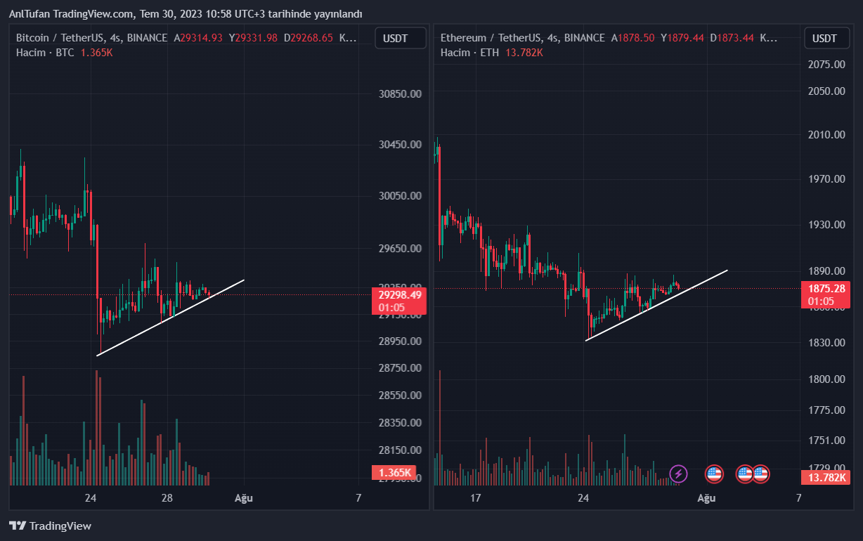Böyle bir senaryoda ilk etapta 29.500 dolar direncini hedefleyecek olan BTC, haftalık ve aylık kapanış öncesi bu seviyeyi aşması halinde, ağustos ayında volatil yükselişler seyredebiliriz.