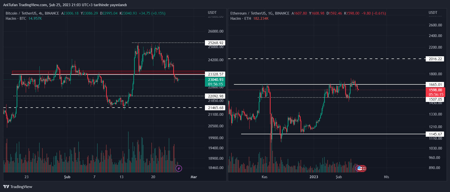 İlerleyen günlerde lider kripto para birimi Bitcoin’in (BTC) 23.300 dolar seviyesini geri kazanamaması, 22.500 dolar desteğine kadar bir düşüşün yaşanmasına sebebiyet verebilir gibi gözükmekte.