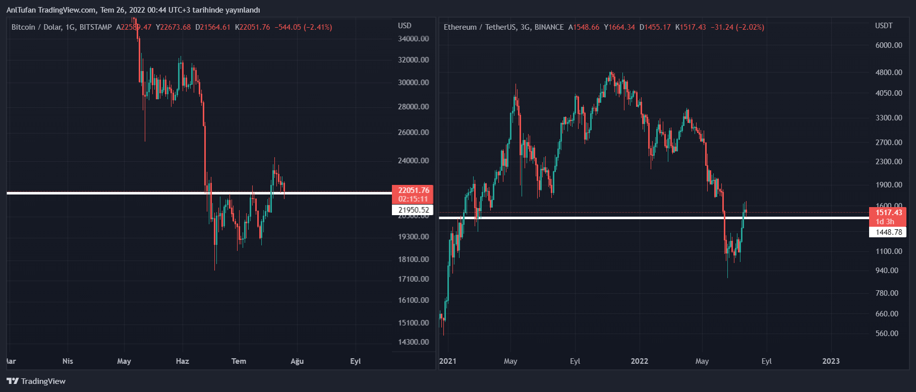 Bitcoin ve Ethereum dışındaki kripto para birimlerine yatırımı olan okurlarımız ise şimdilik BTC‘nin 22 bin dolar altı günlük kapanışlarında satış yapmayı tercih etmeleri daha doğru bir seçenek olabilir gibi gözükmekte.