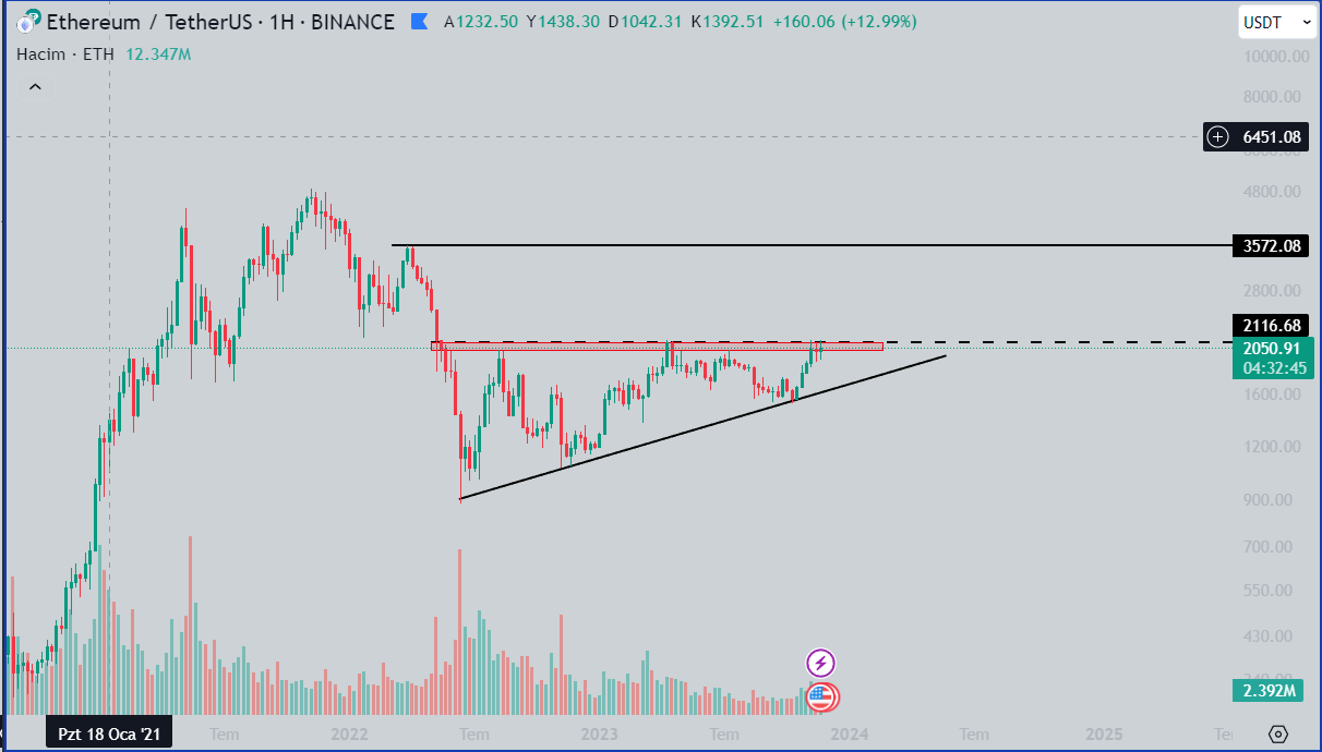 ETH’de önümüzdeki günlerdeki gelişmeler doğrultusunda ya 1.600 dolar seviyesindeki yükselen trendine gerileyecek ya da 3.500 dolarda yer alan direnç seviyesine ulaşacak.