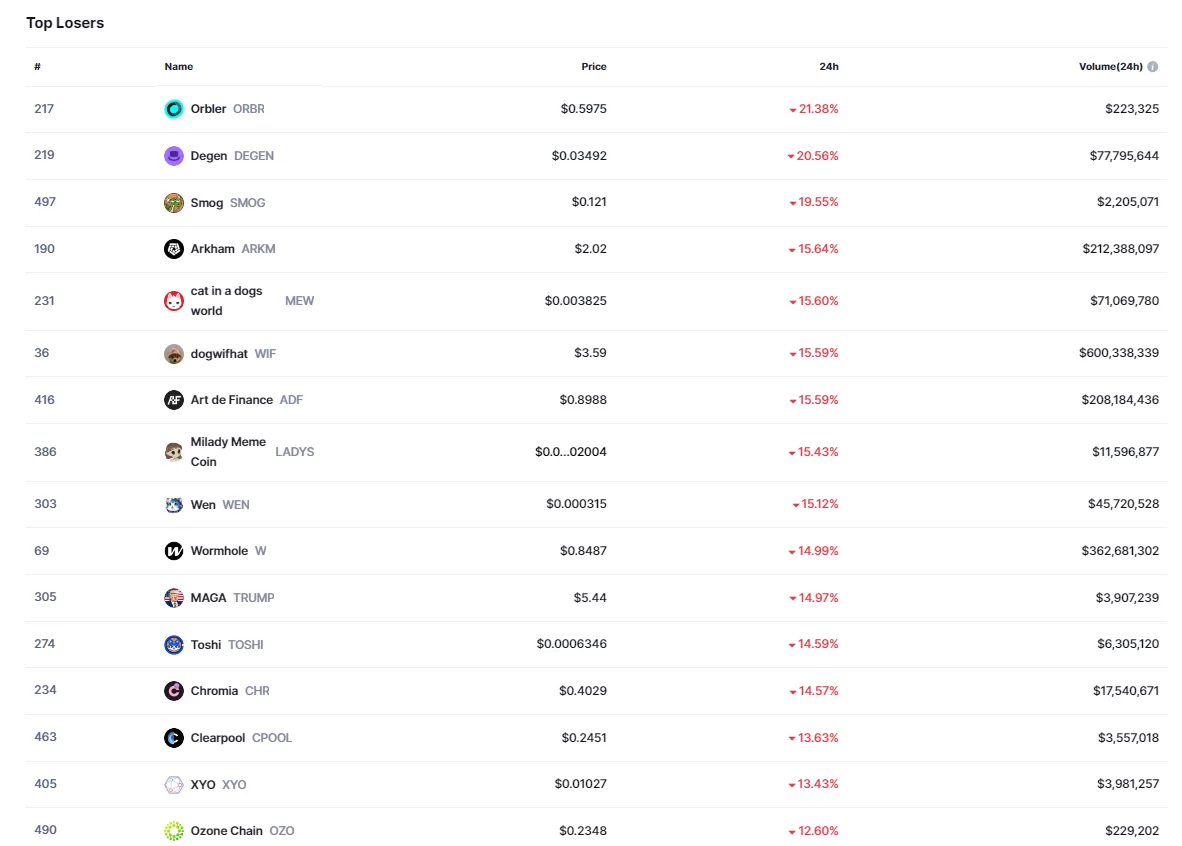 Hadi gelin bugünün en çok düşüş yaşayan altcoin’lerine birlikte göz atalım: