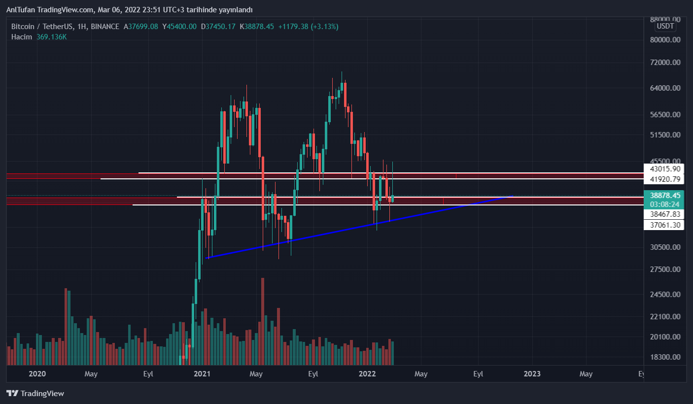 Kritik bir destek bölgesinin halen üzerinde kalmayı başaran Bitcoin, önümüzdeki haftalarda 36.500 – 38.000 dolar desteğini kaybetmediği sürece yükselişe devam edebilir.