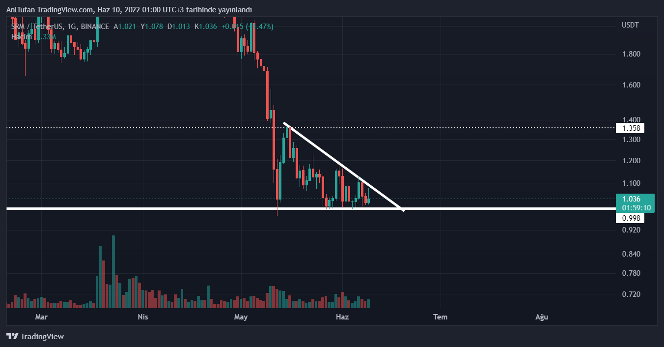 İlerleyen süreçte Bitcoin‘in kırılımı sonrası düşen trendini aşabilecek olan SRM, kısa süre içerisinde 1.35 dolar seviyelerini hedefleyebilir.