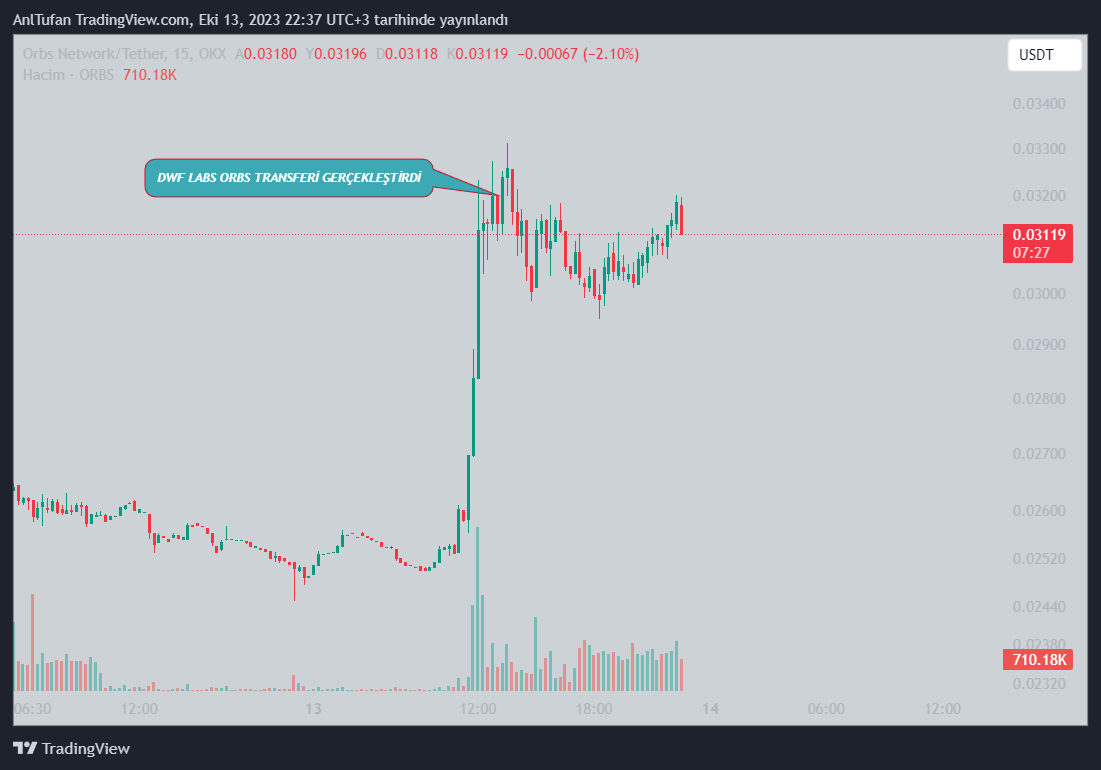 ORBS’nin bugünkü fiyat hareketlerine göz attığımızda fazlasıyla bullish olduğu görülüyor. Bugün sert yükselişler yaşayan ORBS, DWF Labs’ın satışları sonrasında bir miktar geri çekilme yaşadı.