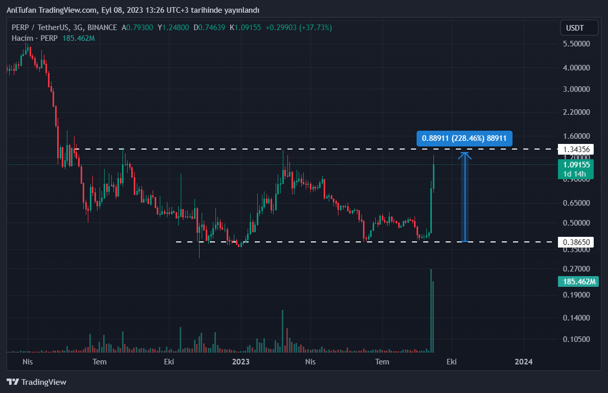 Perpetual Protocol (PERP), son süreçte yaşadığı yükselişlerle dikkat çekiyor. 0.38 dolar desteğinden çok güçlü bir tepki alan PERP, kısa bir süre içerisinde yüzde 200’den fazla yükseliş yaşayarak değerini 3’e katladı.