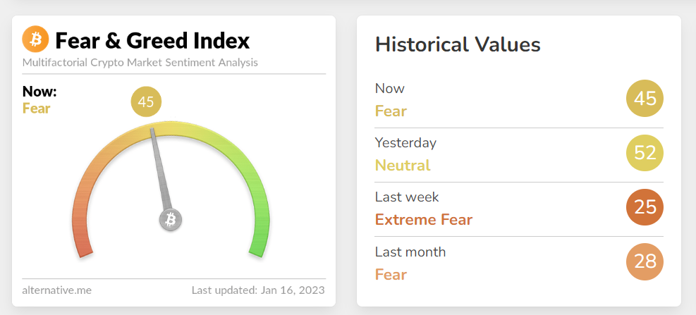 Bitcoin korku ve açgözlülük endeksi an itibariyle 45’li seviyelere kadar yükseldi. Önümüzdeki süreçte Bitcoin’in volatil yükselişlerine devam etmesi, bu endeksin çok daha büyük yükselişler yaşamasını sağlayabilir.