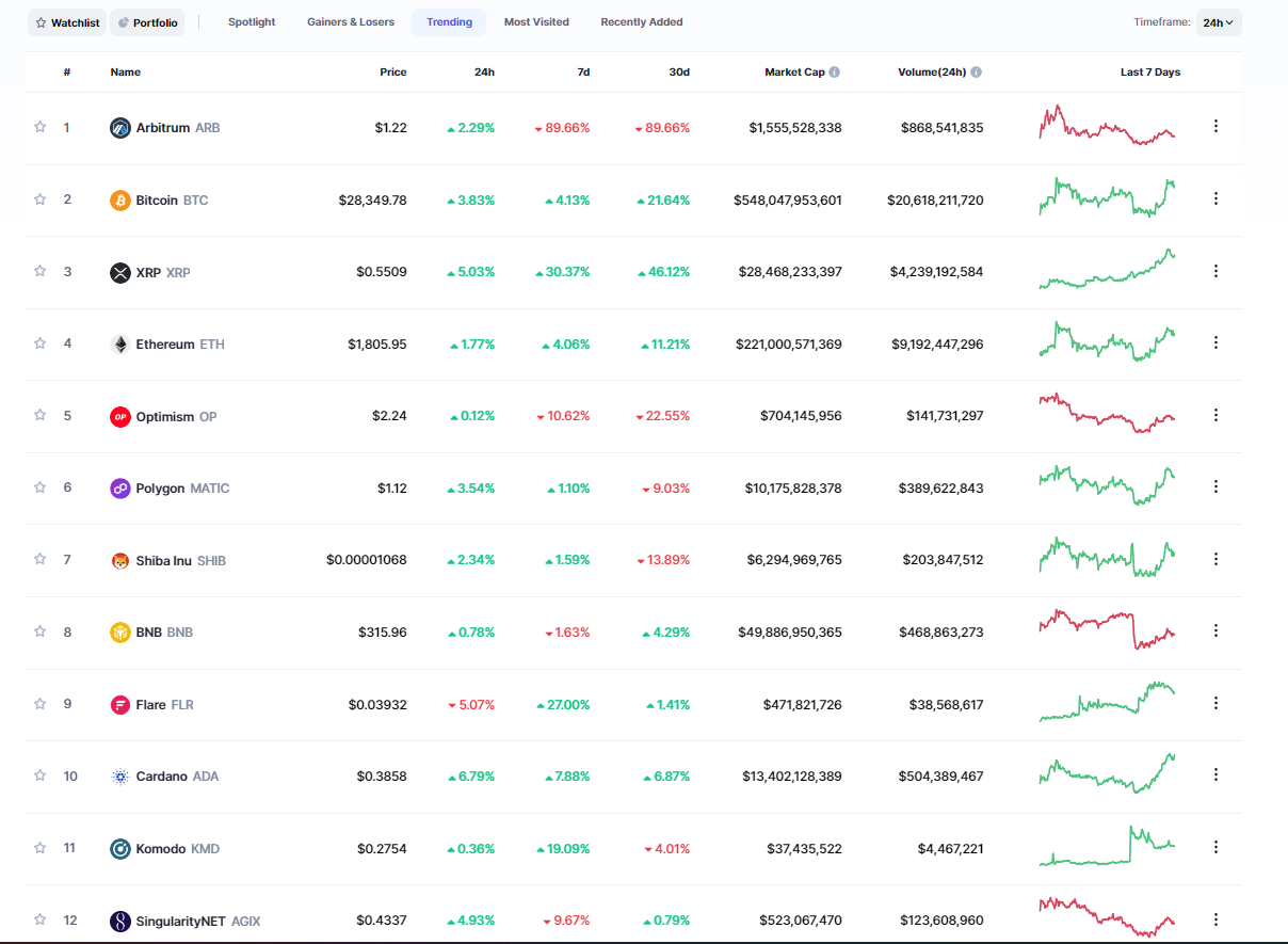 Başarılı bir veri sağlayıcısı olan CoinMarketCap’in aktardıklarına göre, şuan itibariyle yukarıdaki listede yer alan kripto varlıklar “trend ürünler” listesine girmiş durumda.