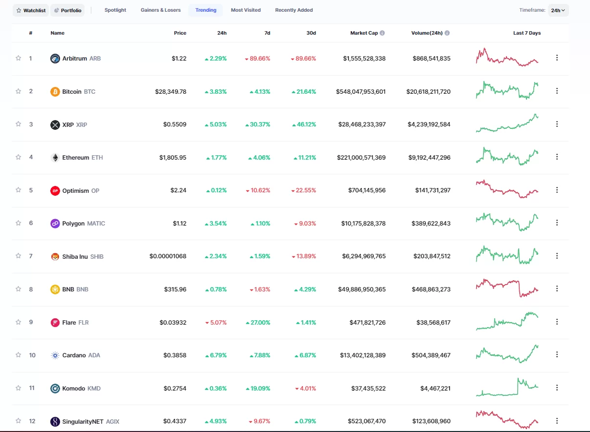Başarılı bir veri sağlayıcısı olan CoinMarketCap’in aktardıklarına göre, şuan itibariyle yukarıdaki listede yer alan kripto varlıklar “trend ürünler” listesine girmiş durumda.