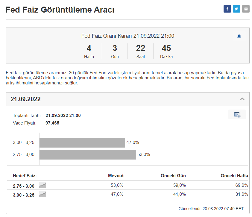 1 aylık bir aranın ardından Eylül ayı itibariyle FED’in tekrardan faiz artışlarına devam edeceği biliniyor. Bu artışlar öncesi ilk sinyaller ise 26 Ağustos tarihinde gelebilir.