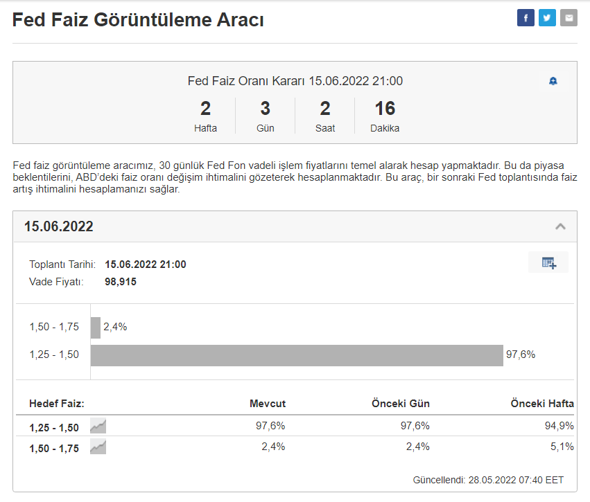 An itibariyle piyasaların haziran ayında alınacak olan 50 baz puanlık faiz artışını fiyatladığı düşünülmekte.