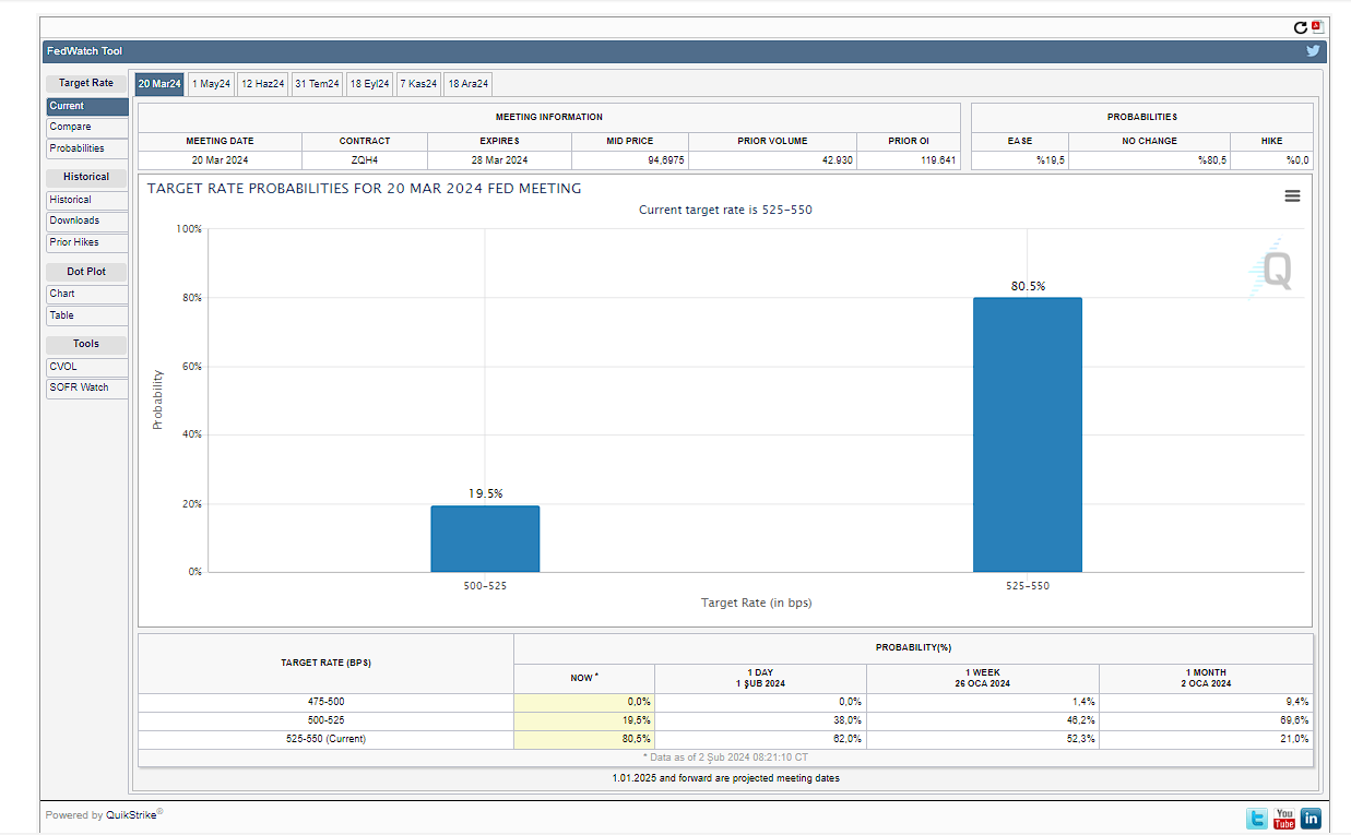 Geçtiğimiz ay itibariyle ise FED’in 20 Mart’ta 25 baz puanlık bir faiz indirimi yapma ihtimali 69.6 seviyesinde yer alıyordu. Son 1 aylık süreç faiz indirimlerinin mayıs ayına ertelenmesine neden olmuşa benziyor.