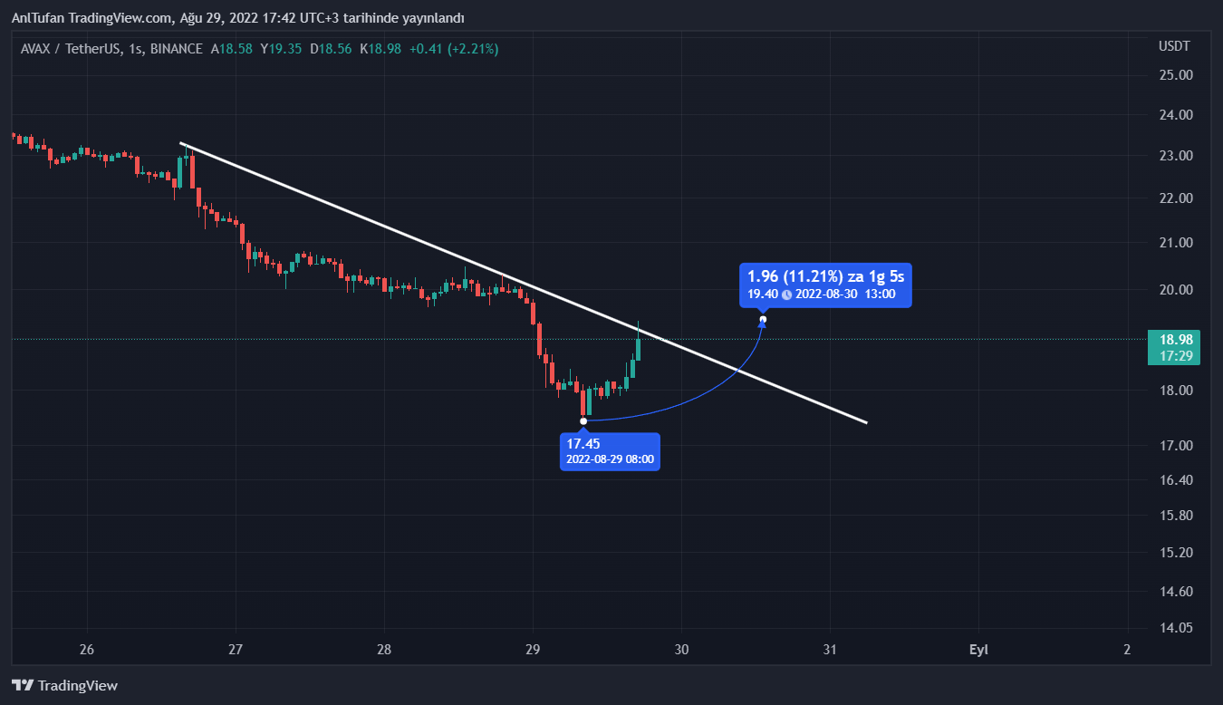 Dip seviyeden yüzde 11’lik bir yükseliş yaşayan AVAX, ilerleyen saatlerde 19.20 dolarda bulunan düşen trendini kırmasıyla birlikte yükselişe devam edebilir.