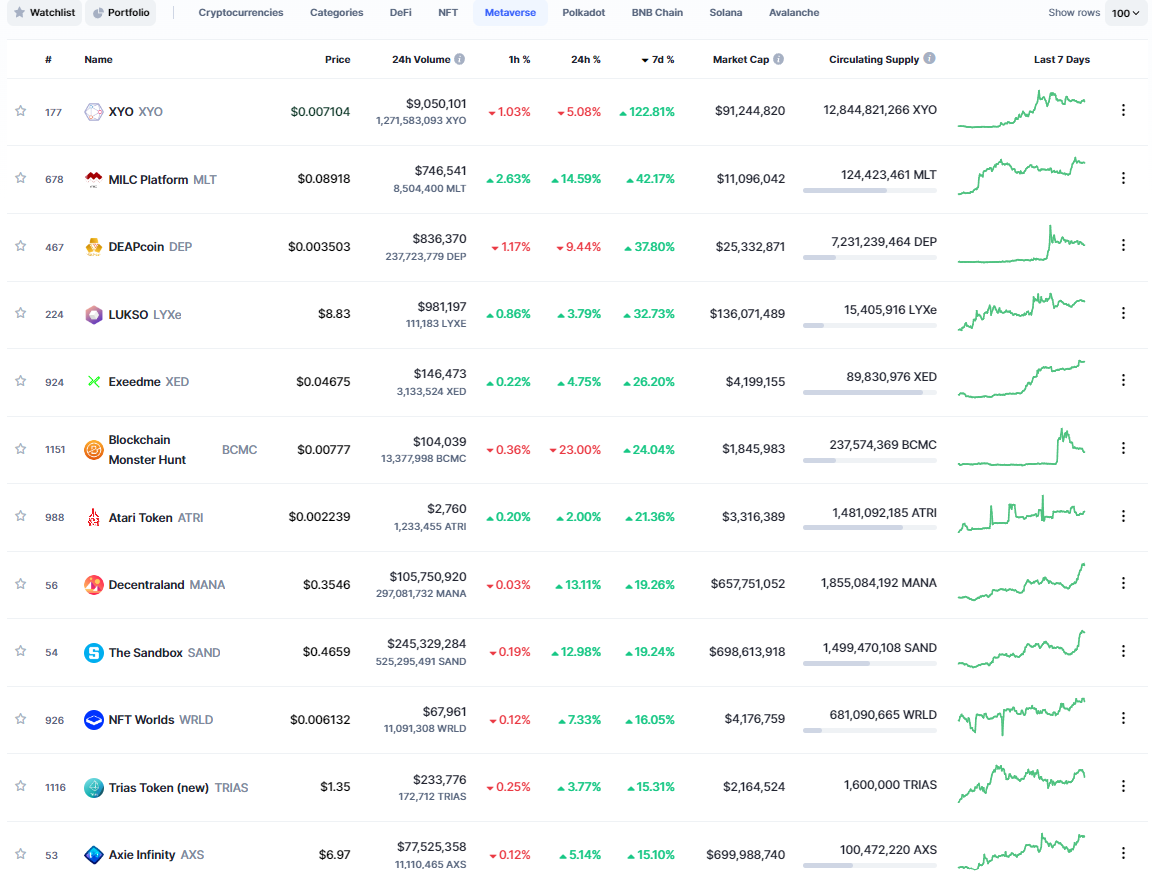 Her ne kadar bu hafta itibariyle Türk kripto para yatırımcılarının yakından takip ettiği metaverse altcoin’leri olan Bloktopia, CEEK VR ve RadioCaca hareketlenmemiş olsa da, XYO ve MLT gibi ürünlerin haftanın en çok kazananları arasına girdi.