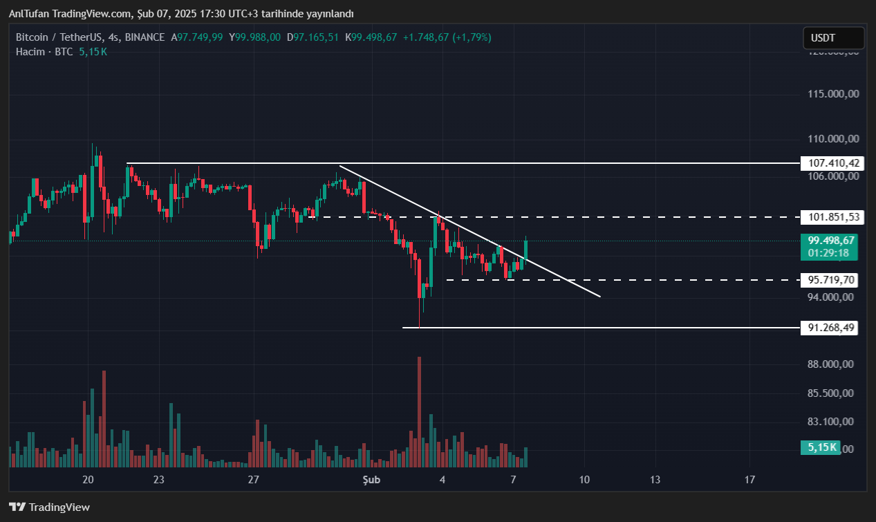 Geçtiğimiz dakikalarda yaşanan yükselişler ile birlikte 100 bin dolar seviyesine ulaşan Bitcoin (BTC), son yaşanan bu sıçrama ile birlikte düşen trendini kırmayı başarmış durumda.