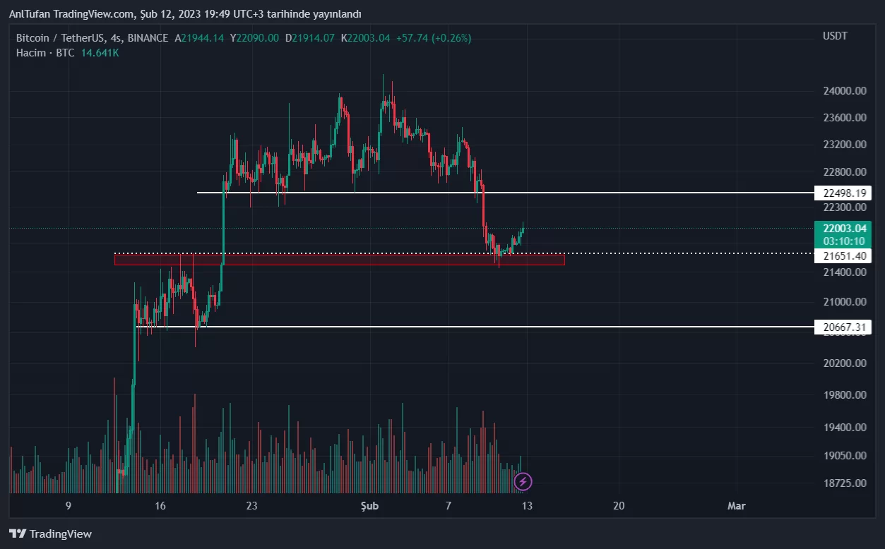 14 Şubat tarihinde beklentilerin üzerinde bir enflasyon verisinin açıklanması, lider kripto para birimi Bitcoin’in, 21.500 dolar ve 20.600 dolar destek seviyelerine kadar gerilemesine sebebiyet verebilir.