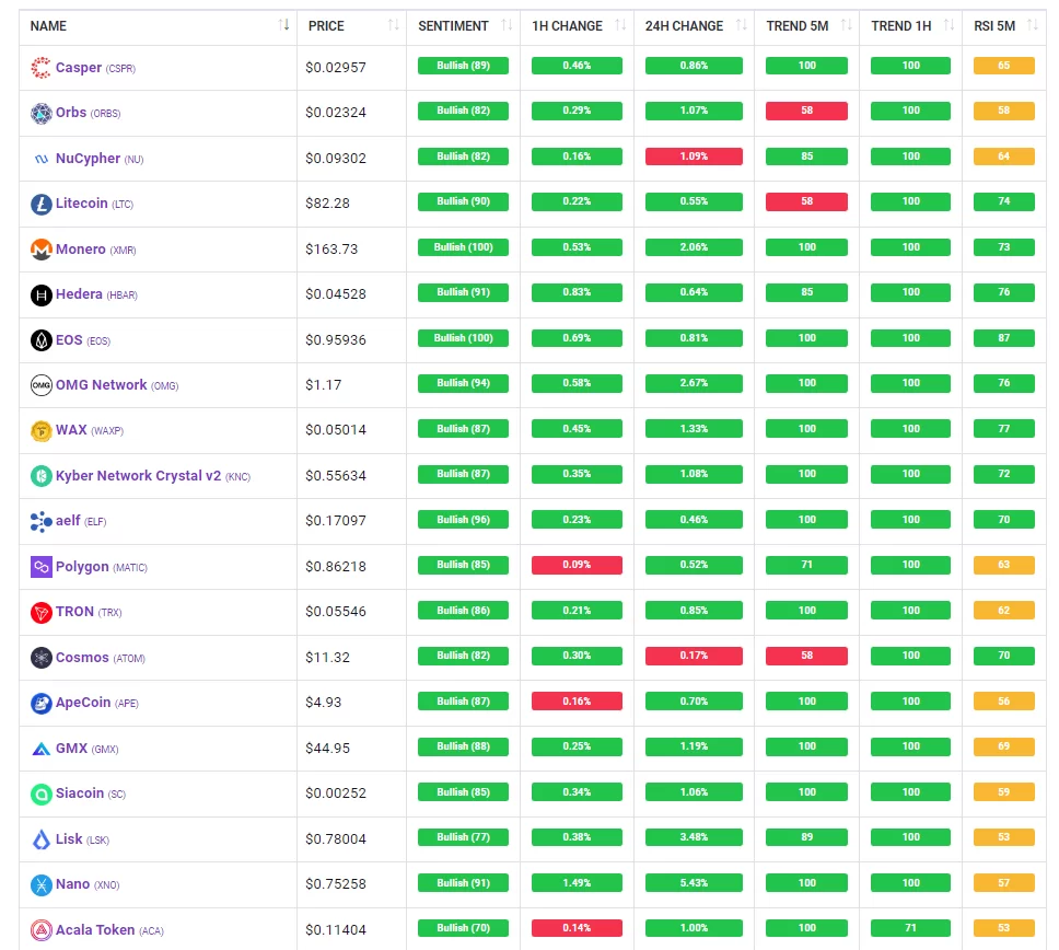 Yapay zeka MA, MACD, RSI ve BB gibi çok önemli indikatörleri analiz ederek piyasaya göre çok daha bullish ürünleri saptamayı başarabiliyor. Bu analizlerin fazlasıyla başarılı olması yatırımcıların dikkatini çekmekte.