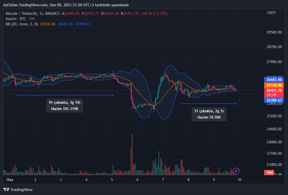 Finans piyasalarında önemli bir indikatör olan Bollinger Bantları, tekrardan Bitcoin grafiği üzerinde sıkışmaya başladı. Son sıkışma ortalama 4 gün sürmüştü.