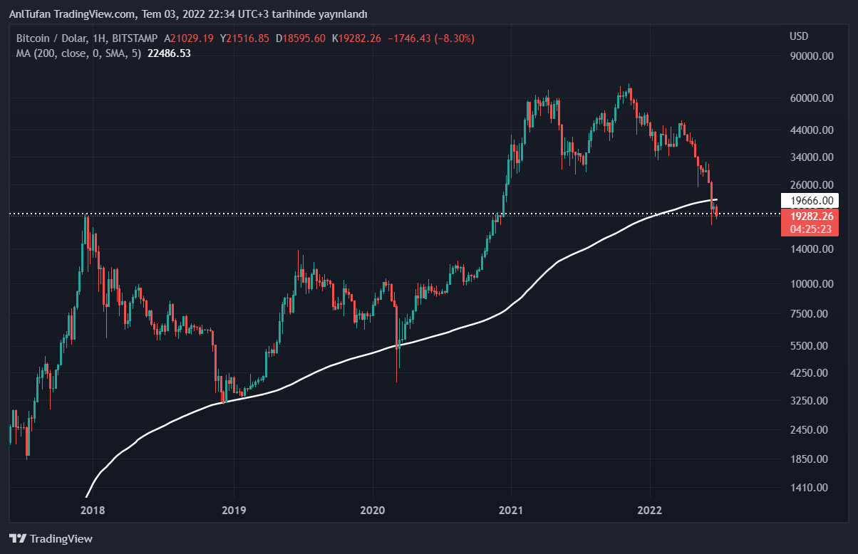 An itibariyle 200 haftalık hareketli ortalamanın ve 50 aylık hareketli ortalamanın dahi altında işlem gören Bitcoin, büyük bir çöküş yaşayabilir.