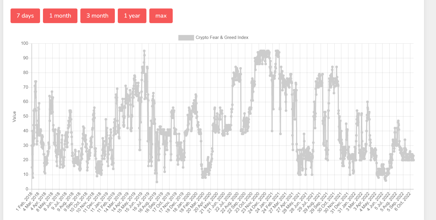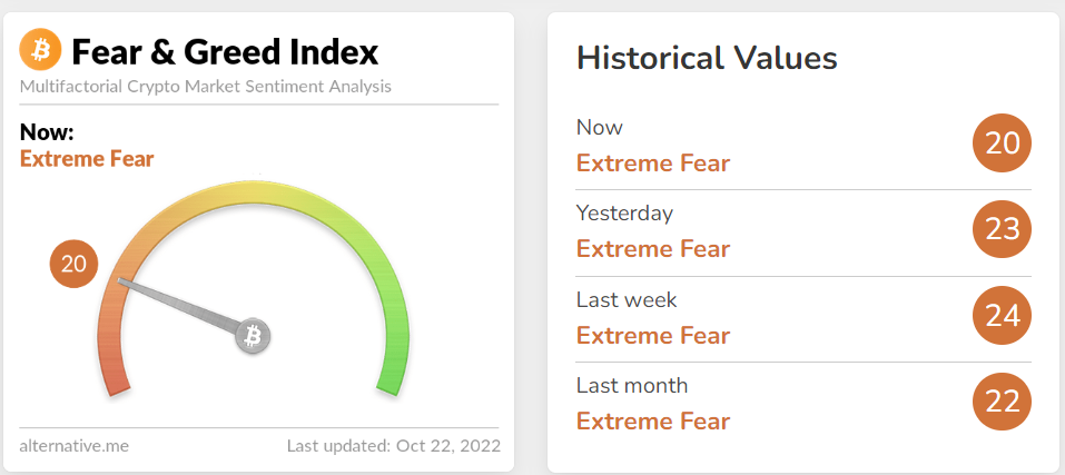 Kripto para sektöründeki korkuda halen artmaya devam ediyor. Aşırı korku seviyesi olan 20 puan noktasında bulunan “kripto korku ve açgözlülük endeksi”, yatırımcıların sektöre şüpheci bir şekilde baktığını kanıtlamakta.