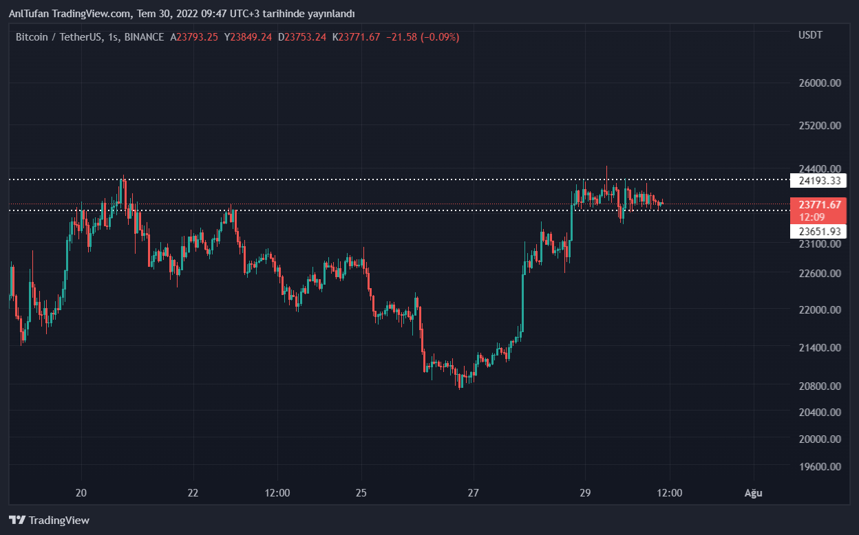 24.200 dolar direncinin kritik bir öneme sahip olduğu gözlenmekte. Geçmiş dönemde de bu seviyeden reddedilen BTC, sert bir şekilde düşüş yaşamıştı.