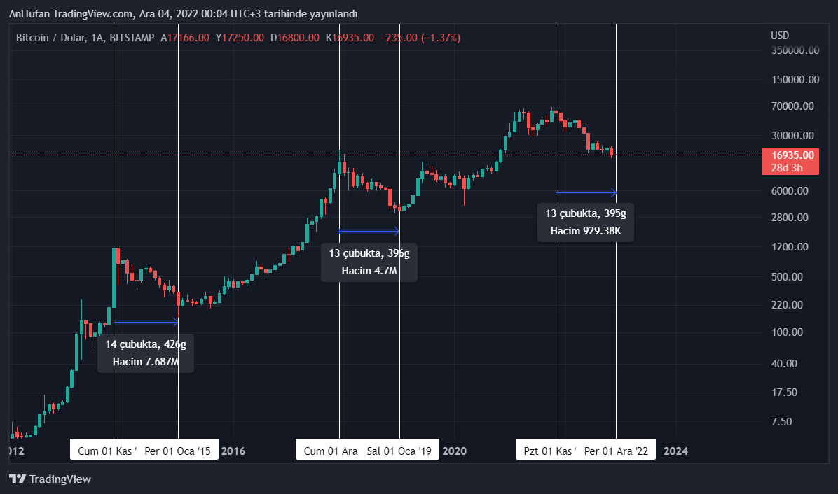 Her ne kadar kripto para sektöründe ayı sezonunun ne zaman biteceği bilinmiyor olsa da, geçmiş 2 düşüş serüvenini incelediğimizde artık sonlara çok yaklaştığımız gözlenmekte.