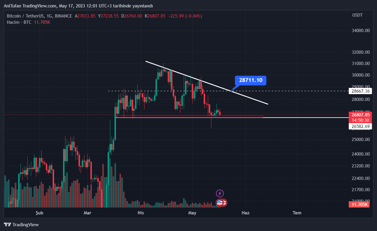 Son 5 gündür lider kripto para birimi Bitcoin (BTC) 26.500 – 27 bin dolar desteğinin üzerinde konumlanıyor. Her ne kadar BTC 25.800 dolar seviyesinden güzel bir tepki alarak 27.600 dolar seviyelerine ulaşsa da, ayıların satıcı baskısı BTC’de tekrardan düşüş getirdi.