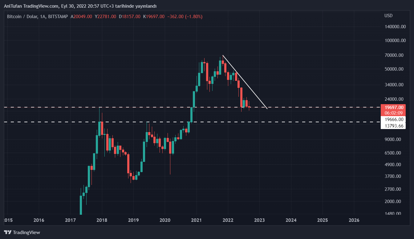 Bitcoin’in 20 bin doların üzerinde bir kapanış yapması, Ekim ayı itibariyle 28 bin dolar noktasında bulunan düşen trendine bir yükselişin yaşanmasını sağlayabilir.