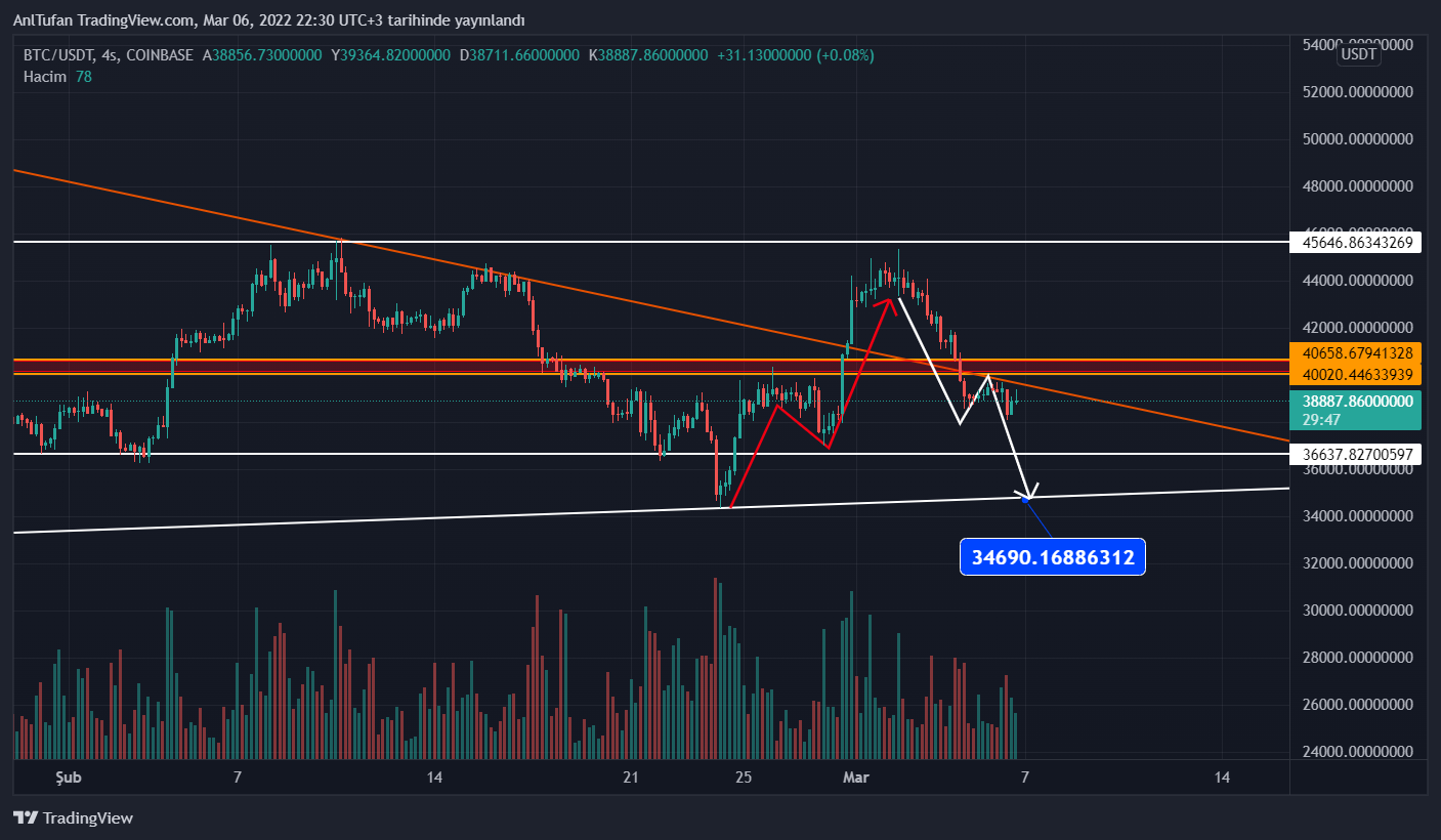 Hali hazırda yatırım yapmamış olan okurlarımız, 40.000 doların kırılımıyla işleme girebileceği gibi yatırımı olan okurlarımız ise 38.500 dolar desteği kaybedilince stop olabilirler.