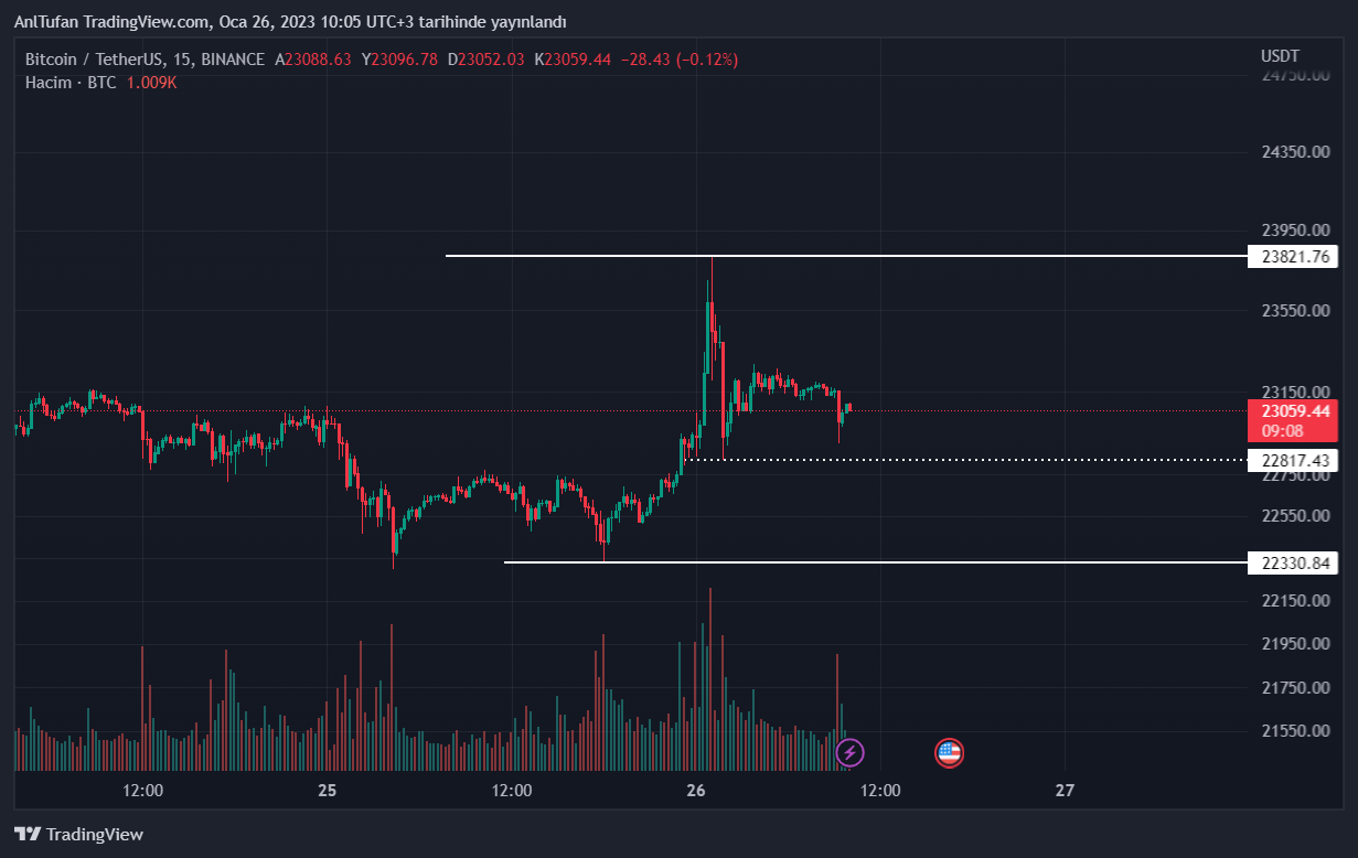 Haberimizin yazıldığı esnada Bitcoin 23 bin doların üzerinde işlem görüyor. İlerleyen saatlerde BTC’nin 22.300 doların altına sarkması ise yükseliş trendinin sonlanmasına neden olabilir.