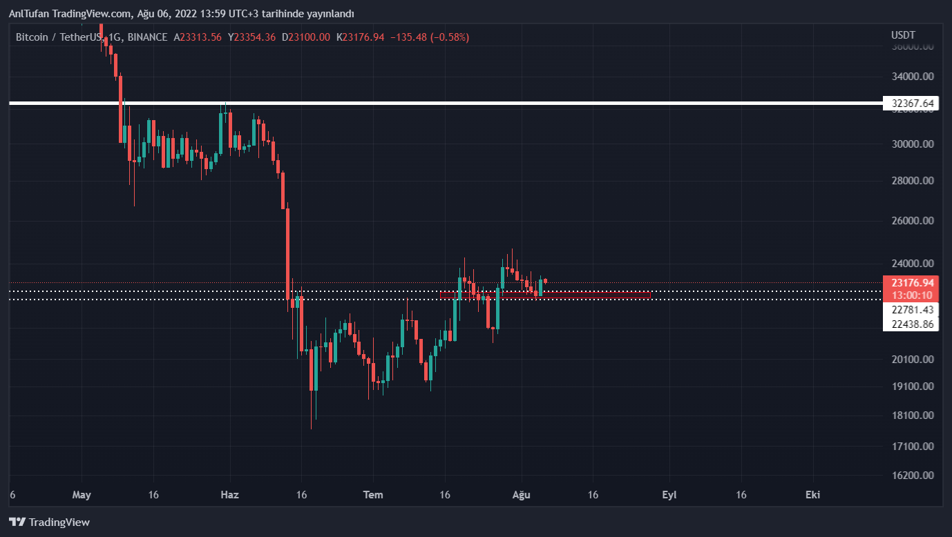 BTC‘de yeni bir zemin oluşturuldu. 22.600 dolar seviyelerinde tutunmayı başaran BTC, Ağustos ayı itibariyle bu destek noktasından 28 bin dolara kadar bir deneme yapabilir.