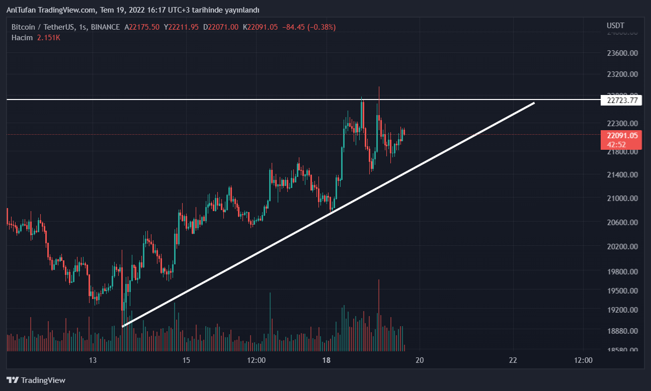 İlerleyen saatlerde tekrardan 22.700 dolara ulaşması beklenen BTC, bu seviyeyi de aşması halinde ise çok kısa bir sürede 30 bin dolara kadar yükselmesi çok olası gibi gözükmekte.