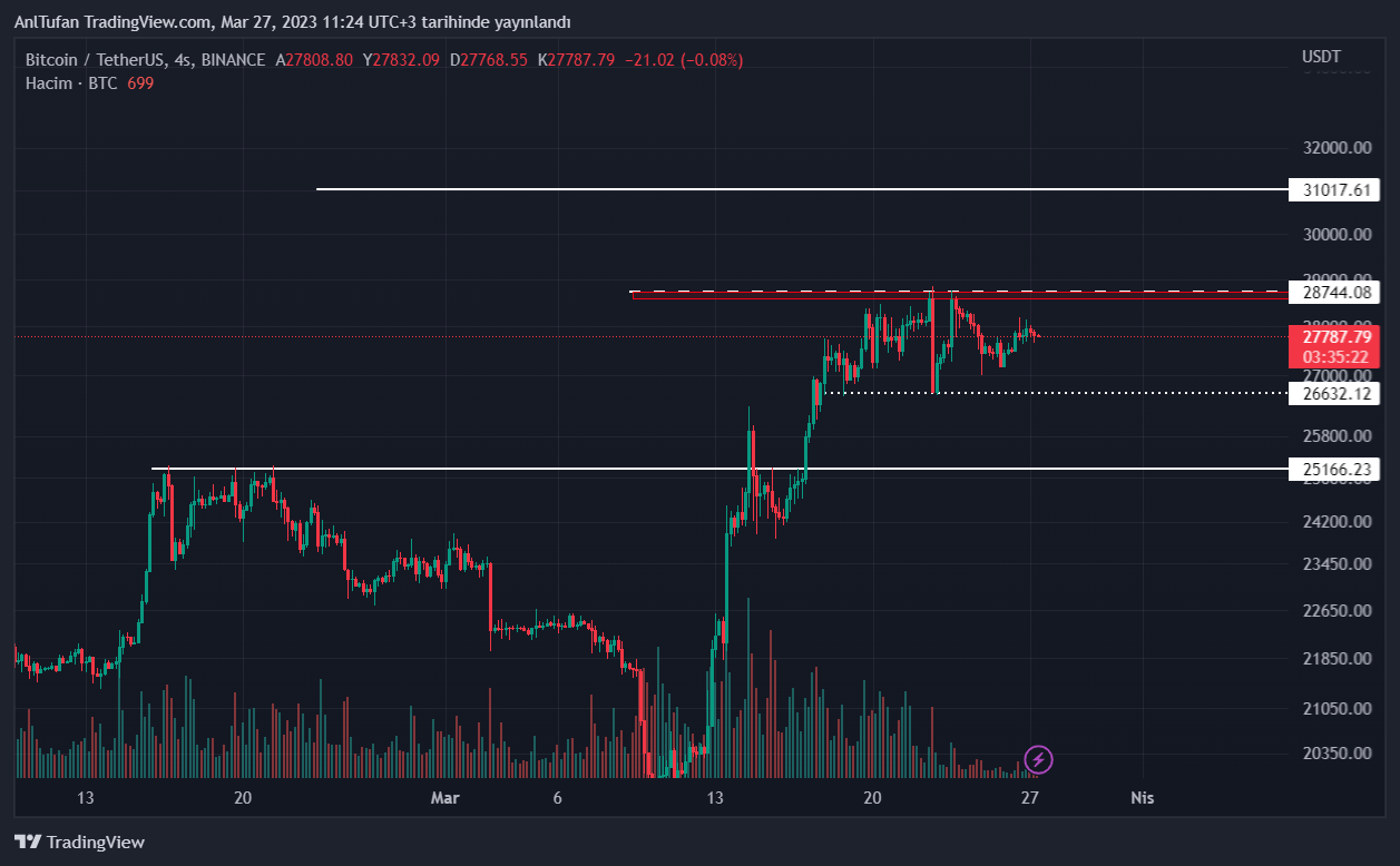 İlerleyen günlerde Bitcoin’in 28.800 dolar direncini aşarak yukarı yönlü bir kırılım gerçekleştirmesi, kısa bir süre içerisinde 31 bin dolar seviyelerine kadar yükseliş yaşamasını sağlayabilir.