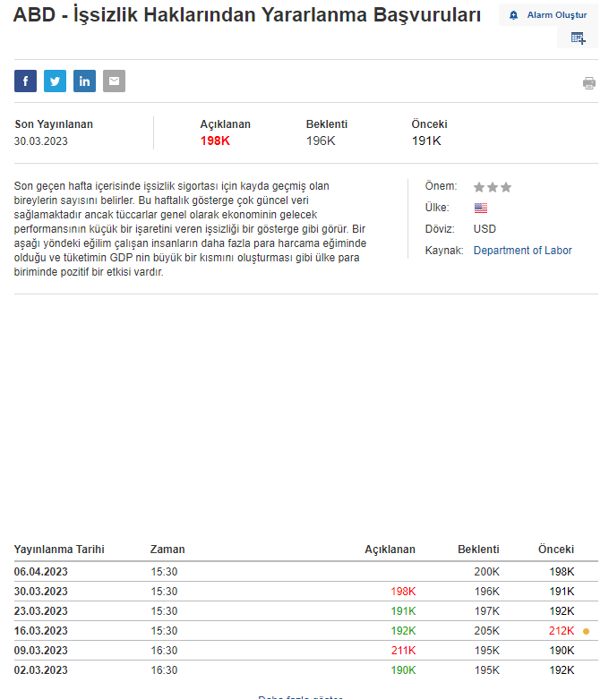 İşsizlik Haklarından Yararlanma Başvurularının ayda 5 defa açıklanıyor olması her ne kadar bu veri sonrasındaki volatilitenin azalmasına neden olsa da, bazı veriler kritik hareketlerin oluşmasına neden olmakta.