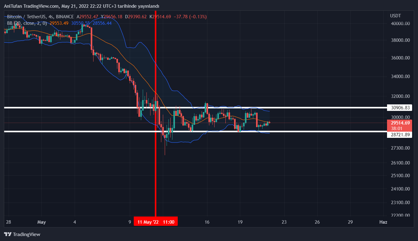 Haberimizin yazıldığı esnada 31.000 dolar ile 28.700 dolar aralığına sıkışan BTC, bu bölgenin tam orta seviyelerinde konumlanıyor.