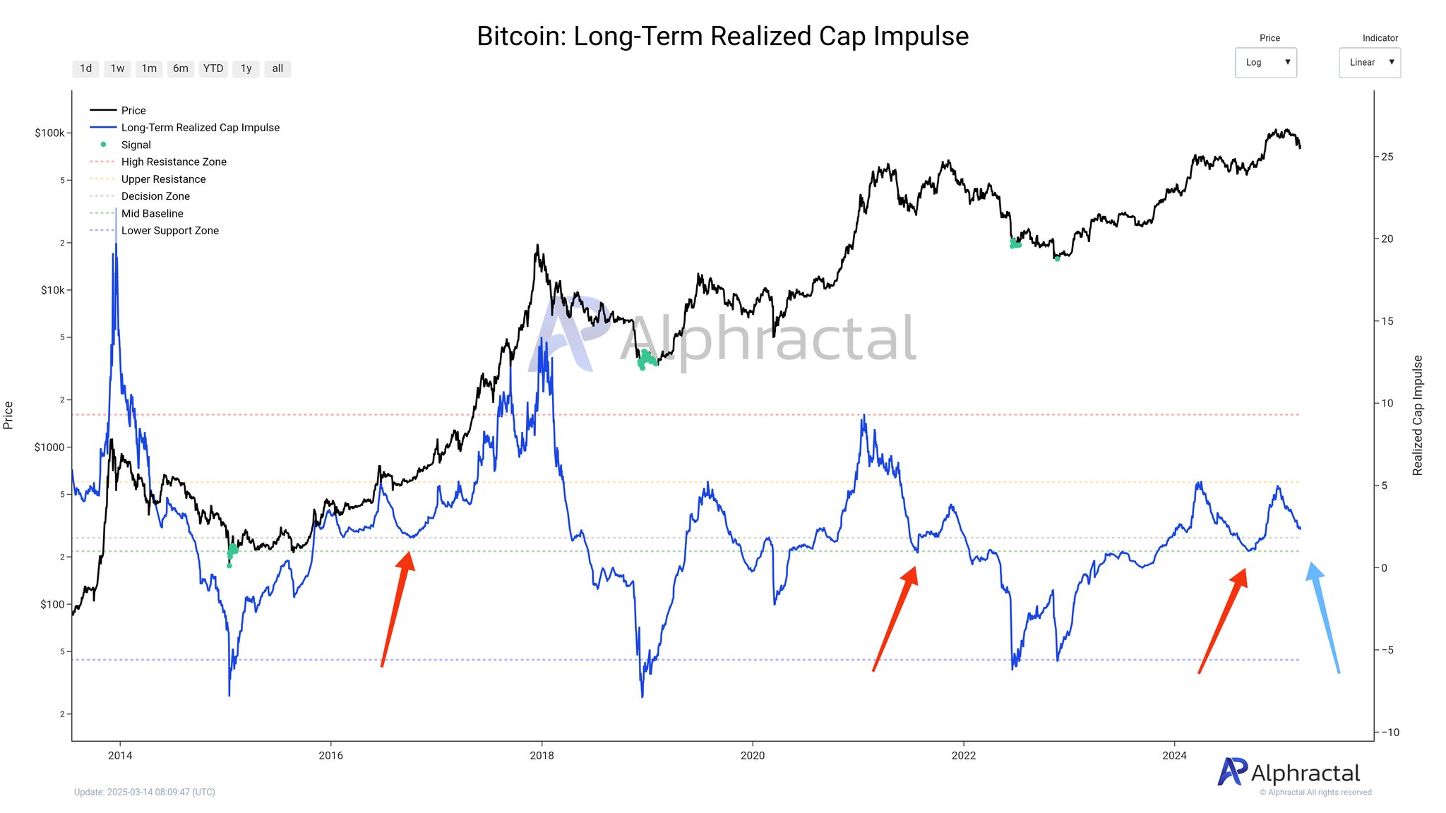 Kısa süre önce ise başarılı analitik şirketi Alphractal‘daki uzmanlar, Bitcoin uzun vadeli Gerçekleşmiş Piyasa Değeri metriğinde gelebilecek önemli bir sinyalin, bir ralliyi tetikleyebileceğini düşünüyor. İşte analistlerin son paylaştığı BTC raporunda yer alan detaylar: