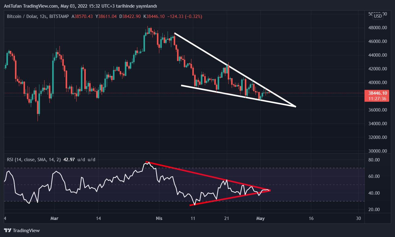 RSI üzerinde aşağı yönlü bir kırılım gelmesi halinde ise Bitcoin‘in 37.000 dolar seviyelerine kadar bir düşüş yaşaması beklenmekte.