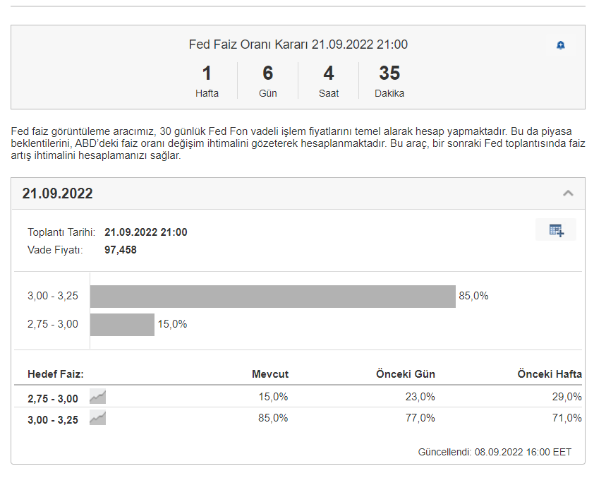 Açıklamalarının geri kalan kısmında ise enflasyon, faiz ve resesyon üçgeninde yine eski konuşmalarına benzer açıklamalarda bulunan FED başkanı, 75 baz puanlık faiz artış beklentisinin ise yüzde 87’ye yükselmesine neden oldu.