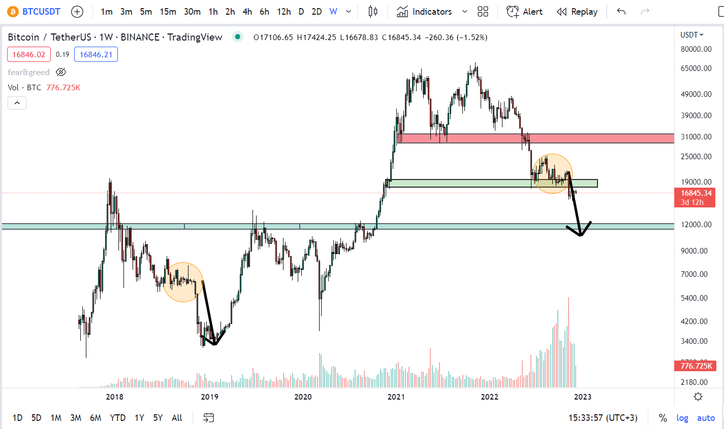 Altcoin Rookie’nin başarılı Bitcoin grafiğinin son görünümüne baktığımızda ise BTC‘nin 10 bin – 12 bin dolar aralığında ayı sezonunu bitireceği görülüyor.