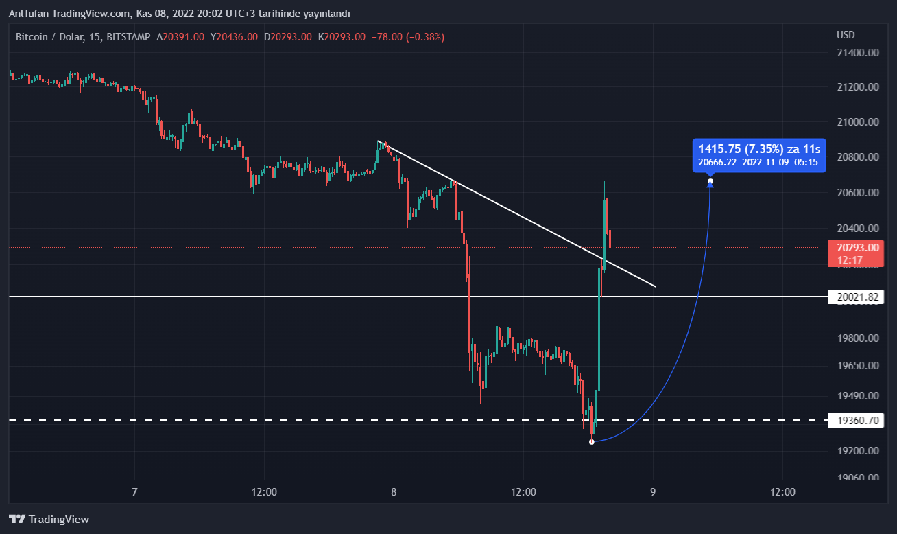 Binance CEO’su CZ’nin FTX‘i satın almasının ardından yukarı yönlü hamleler sergileyen Bitcoin, dakikalar içerisinde yüzde 8’e yakın bir yükseliş gerçekleştirmiş durumda.