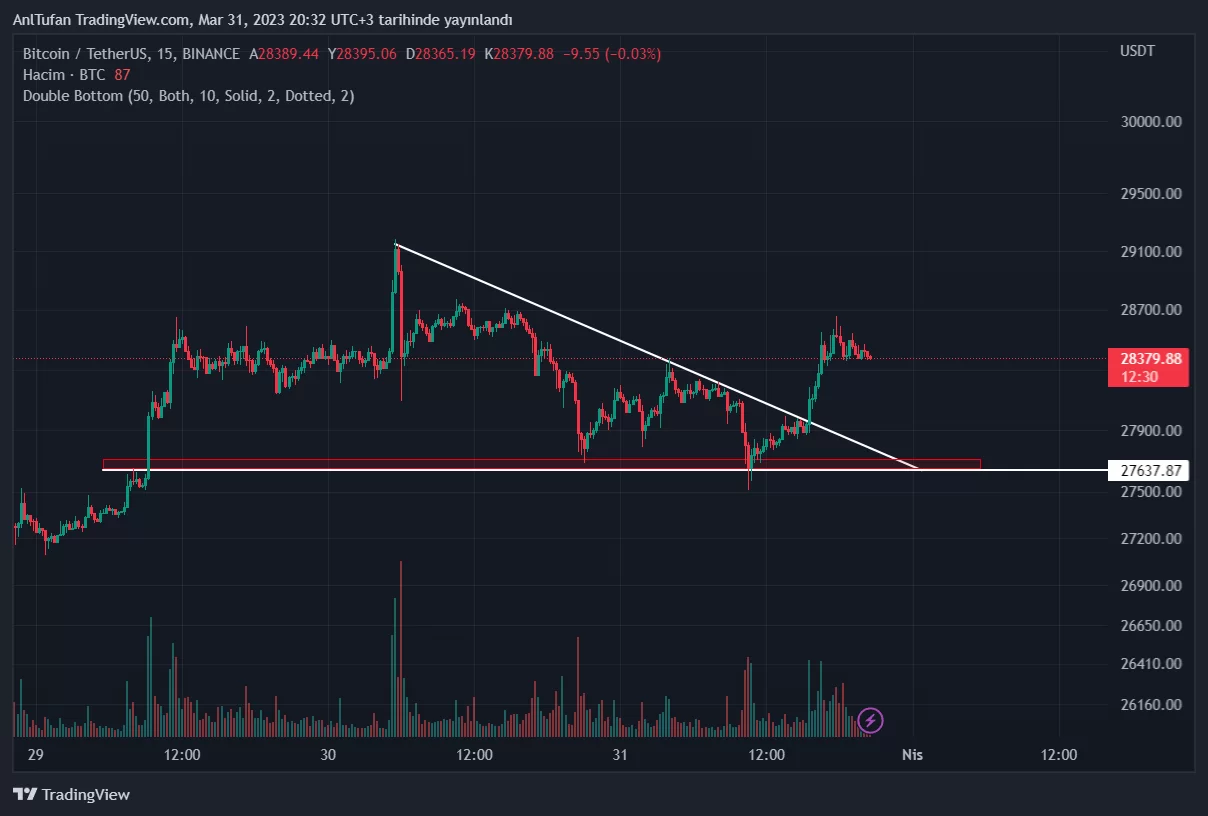 Son yaşanan yükselişler ile birlikte her ne kadar Bitcoin 28.650 dolar seviyelerine kadar yükselse de, yine bu direnç aralığından reddedilerek 28.350 dolara geriledi.