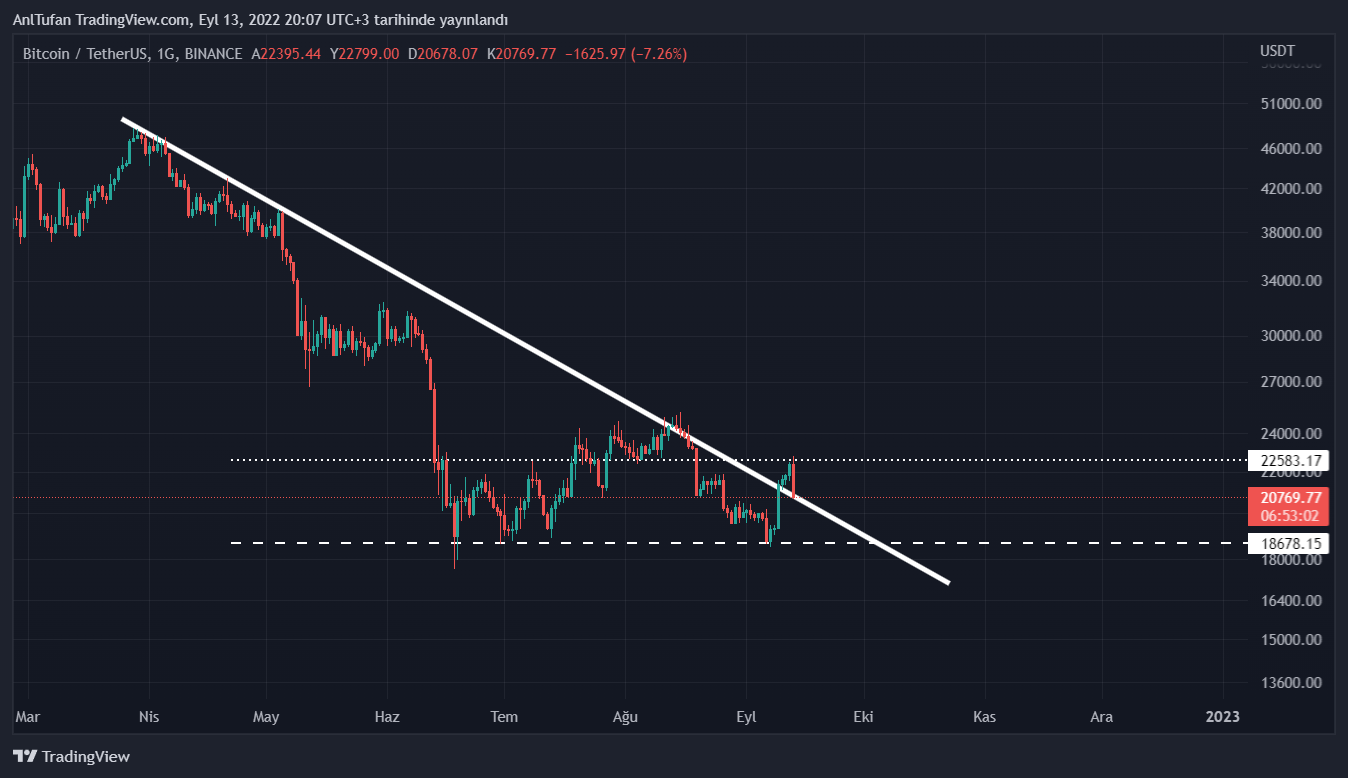 Her ne kadar Bitcoin düşüş yaşıyor olsa da, şuan itibariyle kritik bir seviyeye gerilediği gözlenmekte. Geçtiğimiz günlerde yukarı yönlü kırdığı major düşen trendine retest yapan BTC, 20.600 doların altına sarkmaması gerekiyor.