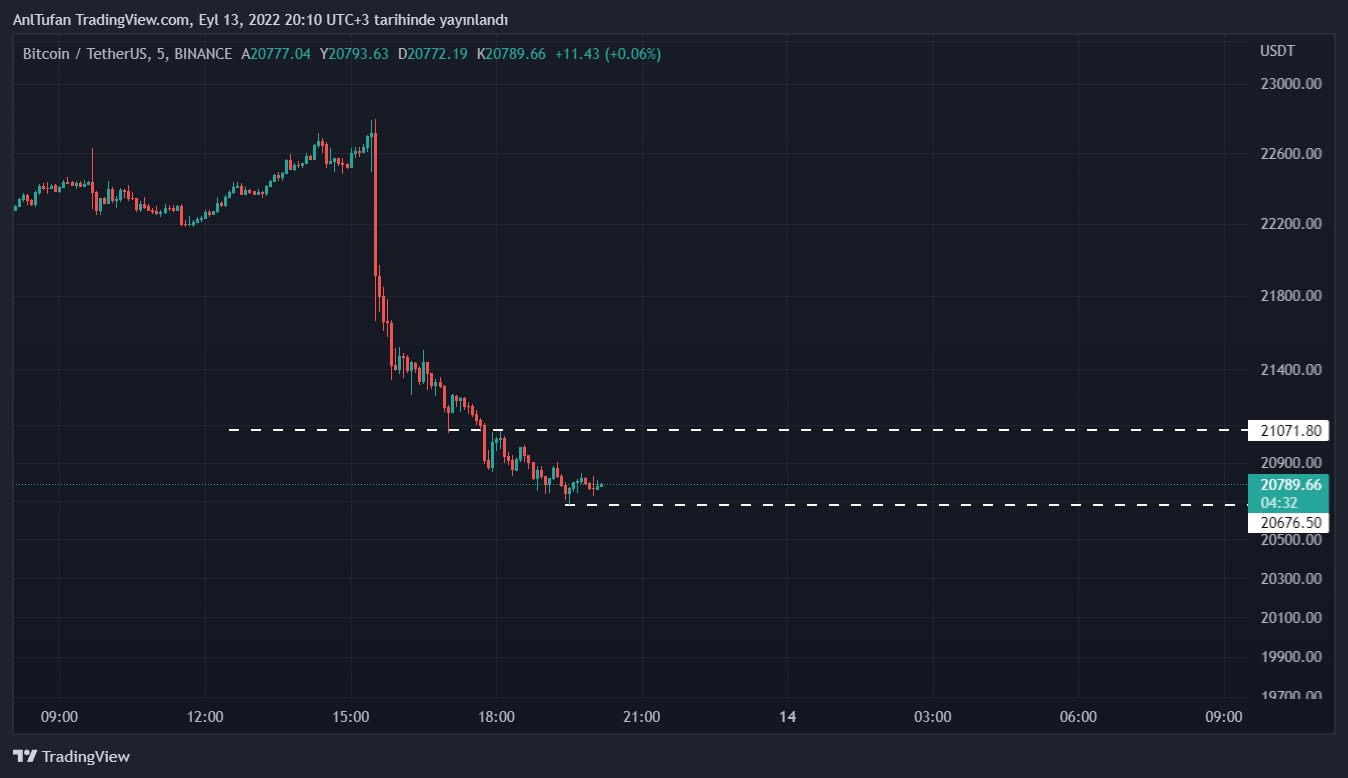 Anlık görünüm olarak Bitcoin’i (BTC) 5 dakikalık grafik üzerinde incelediğimiz takdirde ise satıcı baskısının yavaş yavaş azalmaya başladığı görülüyor.