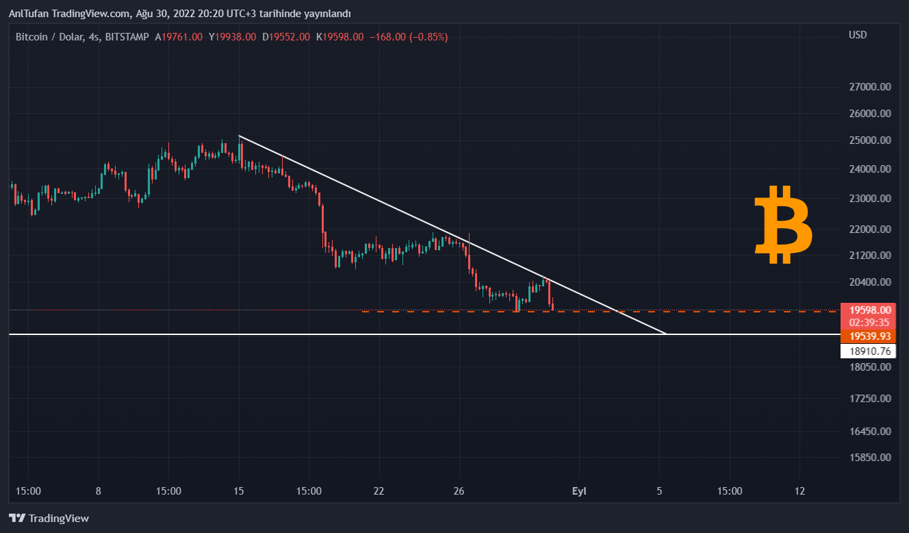 19.550 dolar seviyesinde tutunamaması halinde major destek bölgesi olan 18.800 – 19 bin dolar aralığına gerileyecek olan BTC, kritik bir süreçten geçiyor.