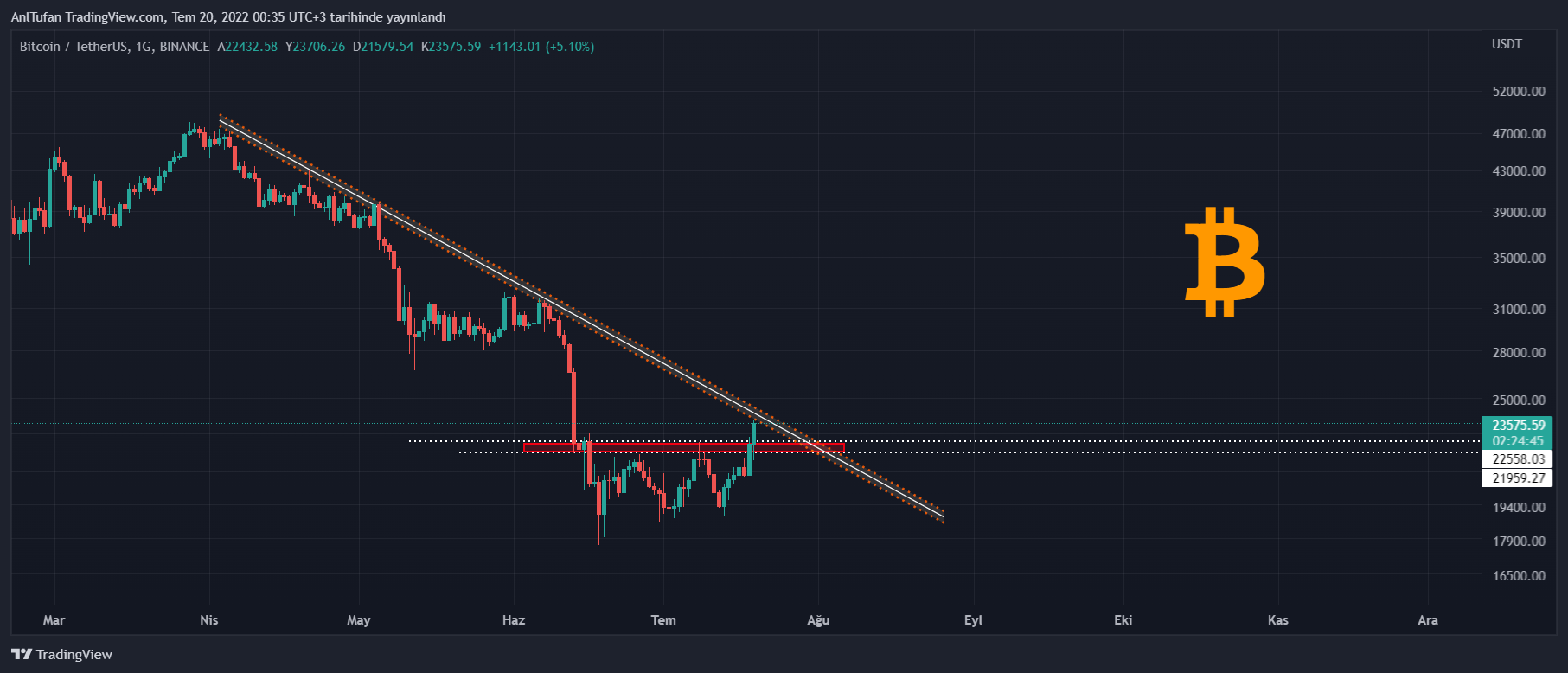 Bugün özelinde ise 200 haftalık hareketli ortalamayı da aşmayı başaran Bitcoin, TSİ 03.00’da 22 bin – 22.500 dolar seviyesinin üzerinde kalması gerekiyor.