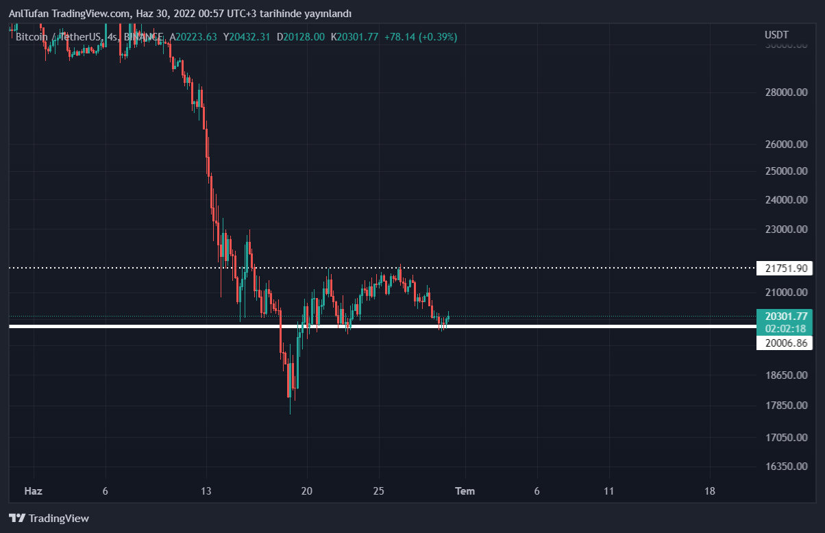 Lider kripto para birimi olan Bitcoin, bugün itibariyle kritik bir destek seviyesi olan 20 bin doları zorladığı görülüyor. Her ne kadar BTC bu seviyelerin altına sarksa da, halen üzerinde konumlanmakta.