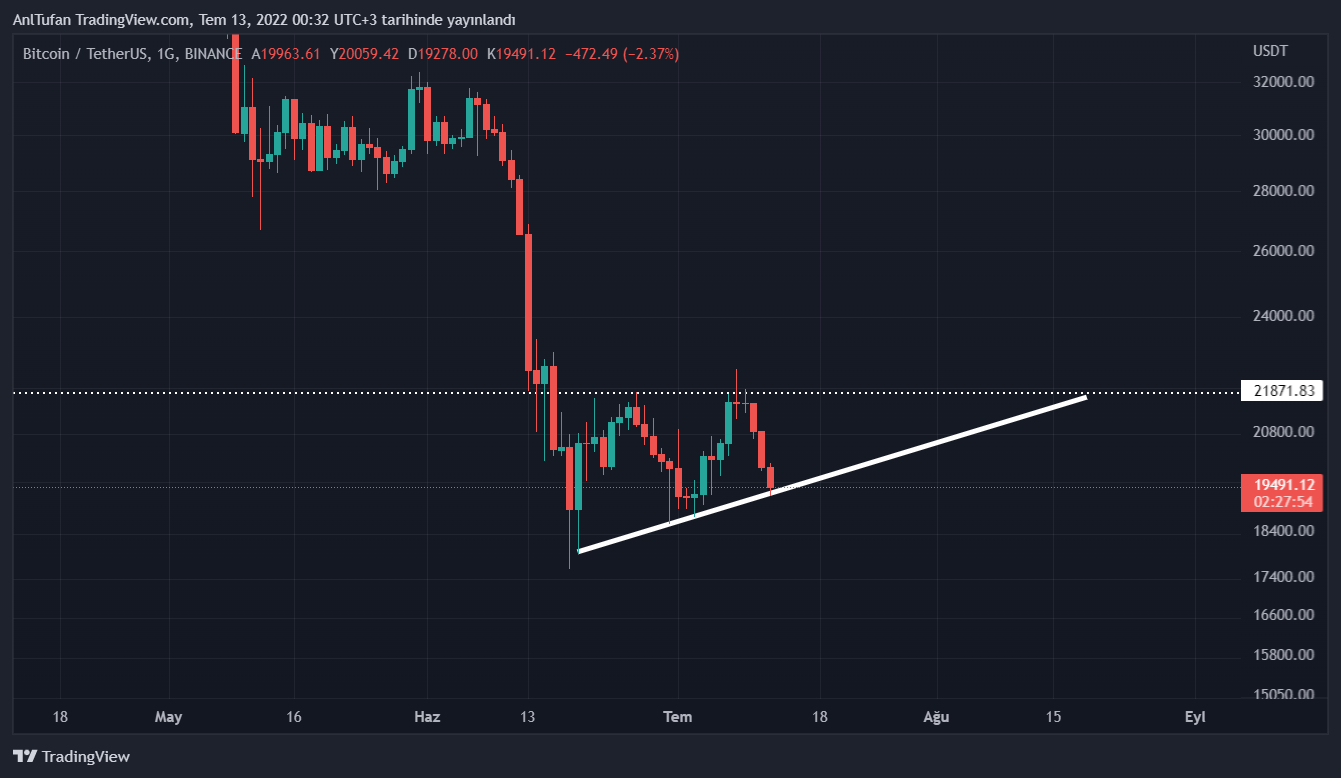 Lider kripto para birimi olan Bitcoin, 17.700 dolara düşmesinin ardından yükselen dipler yaptığı gözlenmekte. Kademeli bir şekilde değer kazanan BTC, 19.200 doların altında kapanış yapması halinde bu yükselen trendi kıracak.