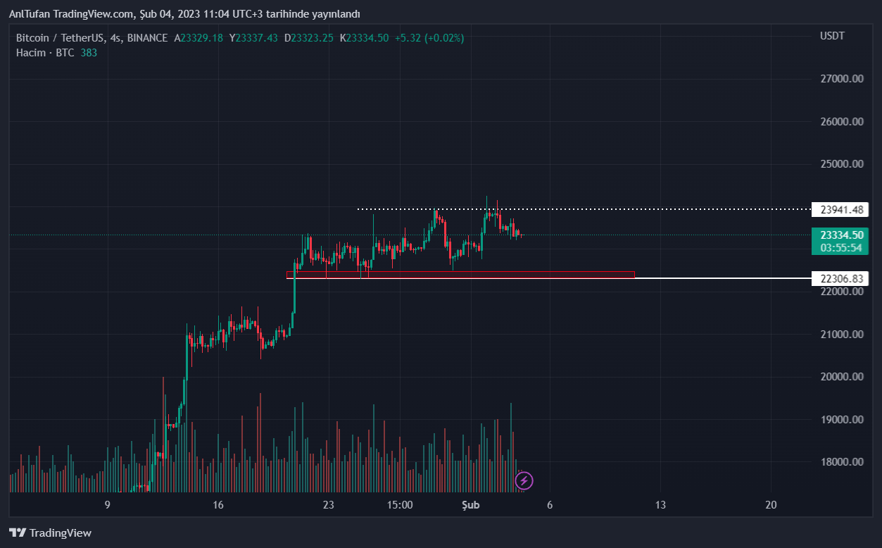 Lider kripto para birimi Bitcoin (BTC), şuan itibariyle 2 kritik seviyenin arasına sıkışıp kaldı. 22.300-24 bin dolar aralığında akümüle olan BTC, ayıların satıcı baskısına rağmen halen üst trend bölgesine çok daha yakın bir konumda duruyor.