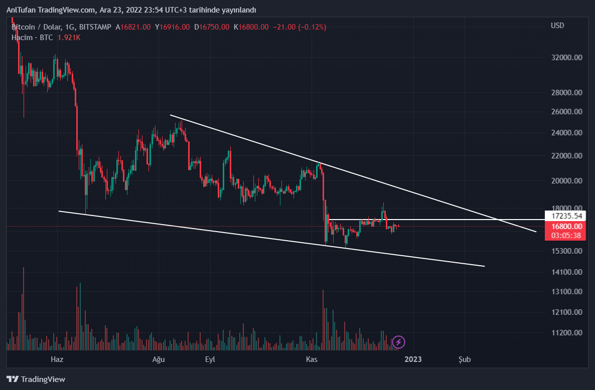 Bu hafta içi olduğu gibi 16.500 – 17 bin dolar aralığında akümüle olması beklenen BTC, altcoin’lerin de yatay bir trendin içerisine sıkışmasına sebebiyet verecek.