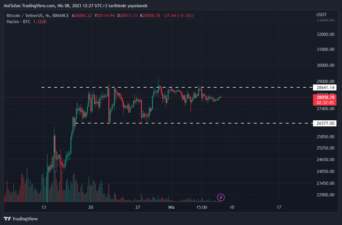 Tam 20 gündür 26.500 – 28.750 dolar aralığında akümüle olan BTC, hafta sonu özelinde de bu aralıkta akümüle olmaya devam etmesi beklenmekte.