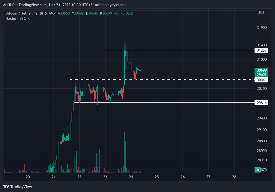 Hafta içi özelinde sert hareketler sergileyen BTC’nin, bu hafta sonu 30.400 – 31.250 dolar aralığında yukarı aşağı hareket edeceği tahmin edilmekte.